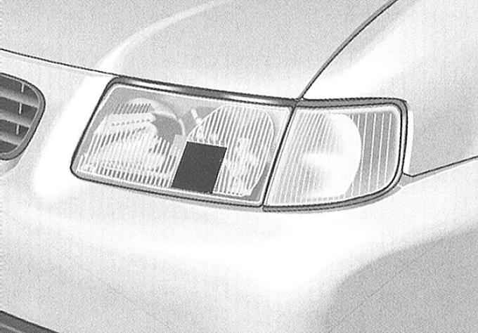 заклейте фары светонепроницаемой клейкой лентой. Места заклеивания рассеивателей