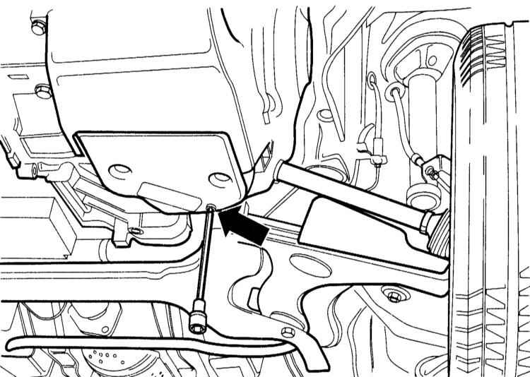 8. Подставьте емкость для сбора масла ATF. Выверните пробку (стрелка на сопроводительной иллюстрации). Масло, находящееся в переливной трубе, будет капать.