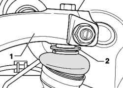 Между маятниковым рычагом рулевого управления 1 и уплотнительной шайбой 2 наконечника рулевой тяги запрещается вставлять зубило или аналогичные инструменты для выдавливания рулевой тяги, т.к. это может приведет к повреждению уплотнительной шайбы ( рис. 4.71).