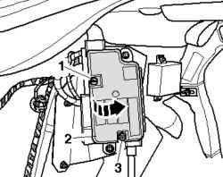 Освободите быстроразъемные фиксаторы 1 и 3 и откройте крышку 2 коробки главного предохранителя в багажнике ( рис. 7.105).