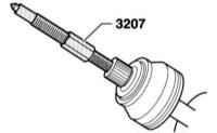 - Вверните нажимной винт (3207) с направляющей для резьбы М14/М16 в цапфу шарнира так, чтобы снять шарнир с вала.