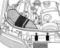 - Снимите верхнюю крышку двигателя слева (2) и справа (3), обратитесь к