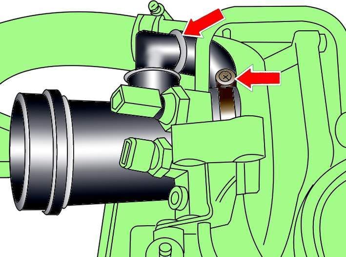 Ослабьте хомуты и снимите воздушный патрубок с воздушного фильтра.