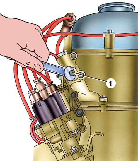 ключом провернуть коленчатый вал на 1–1/2 оборота в направлении его