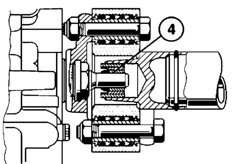 Используйте новые гайки. Не допускается задвигать ШРУС назад во время сборки, т. к. смазка может выдавить уплотнительное кольцо и нарушить герметичность шарнира.