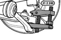С помощью съемника № 31 2 240 отсоедините поперечный рычаг подвески от поворотного кулака.