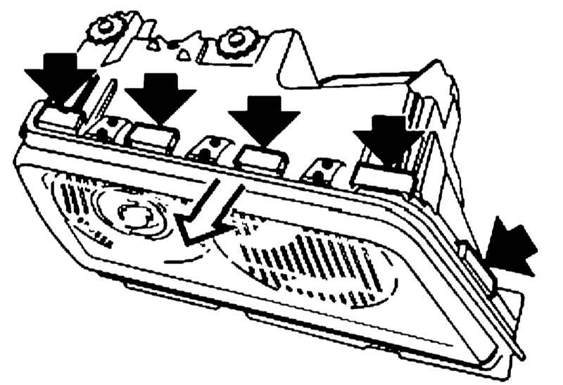 - Отожмите верхние и нижние фиксаторы и снимите защитное стекло рассеивателя.