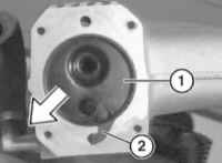 Разъедините разъем (1). Выверните болты крепления корпуса дроссельной заслонки, снимите его, не отсоединяя шланги, и отведите в сторону.