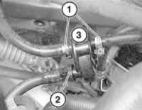 - Отсоединить разъем (1), выверните болты на турбокомпрессоре (2) и закрепите его в стороне.