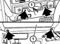 - Немного отожмите друг от друга дефлектор (1) и панель управления отопителем (2). Отожмите фиксаторы и выведите панель управления отопителем сначала из верхнего направляющего паза, затем оттяните дефлектор вверх и снимите панель управления.