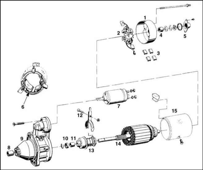Стартер состоит из приводной части, полюсной и коллекторной. В полюсной и коллекторной