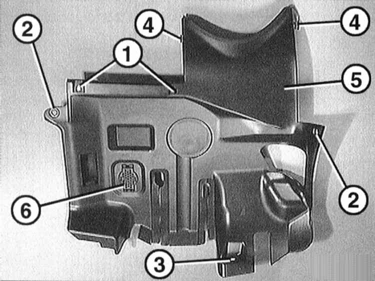 5 Нажмите на скобы -4- в направлении рулевой колонки и освободите