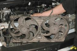 23. Промойте радиатор снаружи струей воды и просушите. Если на пластмассовых бачках радиатора есть трещины, замените радиатор.