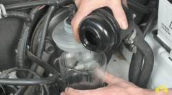 7. Устанавливайте новый бачок в порядке, обратном снятию. Залейте жидкость и прокачайте гидросистему (см. «Прокачка системы гидроусилителя рулевого управления»).