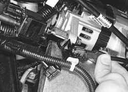 2. Сожмите пружинный фиксатор и отсоедините от датчика колодку жгута проводов.
