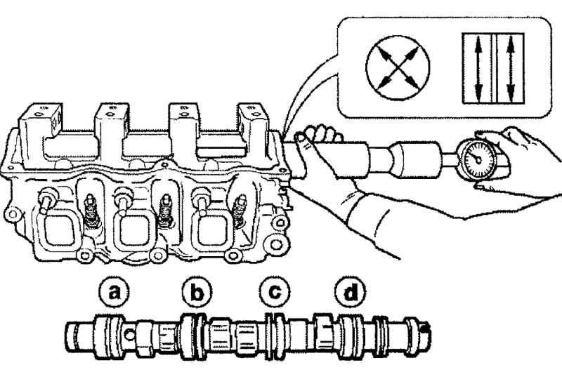 Индикатором часового типа измерьте радиальное биение распределительного вала. Замените распределительный вал, если измеренная величина будет больше 0,03 мм.