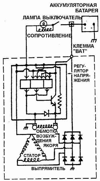 7.14. Диагностика неисправностей генератора CS-121Электрическая схема для проверки генератора на автомобиле
