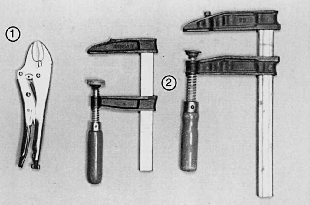 Рис. 2.13. Разводной цанговый ключ (1) и струбцины (2), заменяющие в ряде работ «третью» руку
