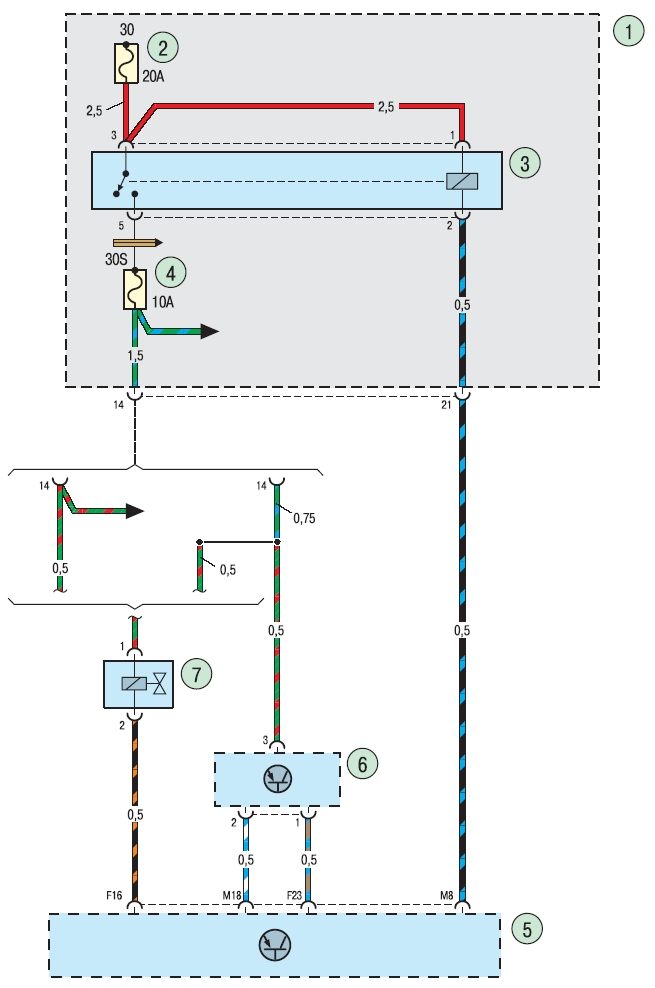 19.1. Схема 1. Соединения стеклоочистителя и стеклоомывателя ветрового стекла