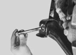8. Установите детали в порядке, обратном снятию, не затягивая окончательно крепления резинометаллических шарниров рычага.