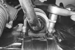 10. Выверните по два болта крепления скоб штанги стабилизатора к поперечине передней подвески…