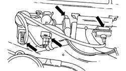 - выньте предохранительный зажим тросика дроссельной заслонки, выведите из зацепления с рычагом тросика дроссельной заслонки и осторожно переложите весь тросик назад;