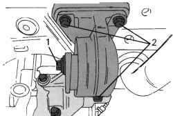 - на автомобилях с механической коробкой передач ослабьте винты правого упора от проворачивания на два оборота. Это винт 1 ( рис. 109) опоры двигателя и винты 2 подрамника;