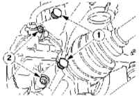 - Демонтируйте суппорт с двух крепежных винтов 2, предварительно