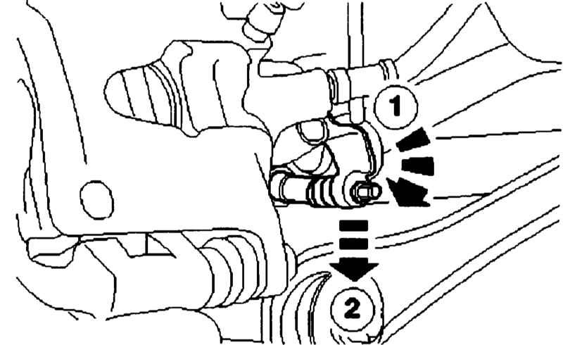 1 к тормозному суппорту изнутри и свесьте трос 2.