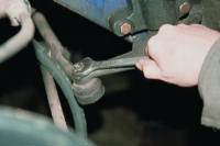 Повернув рулевое колесо вправо до упора, специальным съемником выпрессовываем шаровой палец из отверстия.