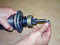 Оперев ось якоря на деревянный брусок, через накидной ключ “на 13” сбиваем упорную втулку.