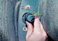 Отсоединяем патрон с лампой (при необходимости сдвигаем чехол и меняем неисправную лампу).