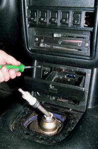 Той же отверткой поддеваем переднюю вставку консоли и снимаем ее.