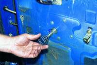 Поддев отверткой “отщелкиваем” пистоны крепления обивки двери…