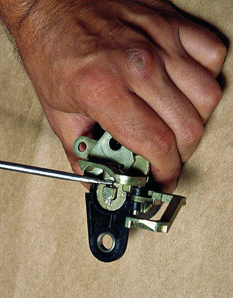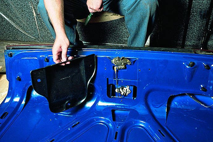 Устанавливаем замок привода в обратной последовательности и проверяем его работу. Перемещая защелку в пределах прорезей, регулируем ее положение и затягиваем винты. Замок должен четко, надежно и без перекосов фиксировать крышку багажника.