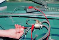Сдвинув с разъемов электромагнитного клапана изоляцию, подсоединяем вольтметр.