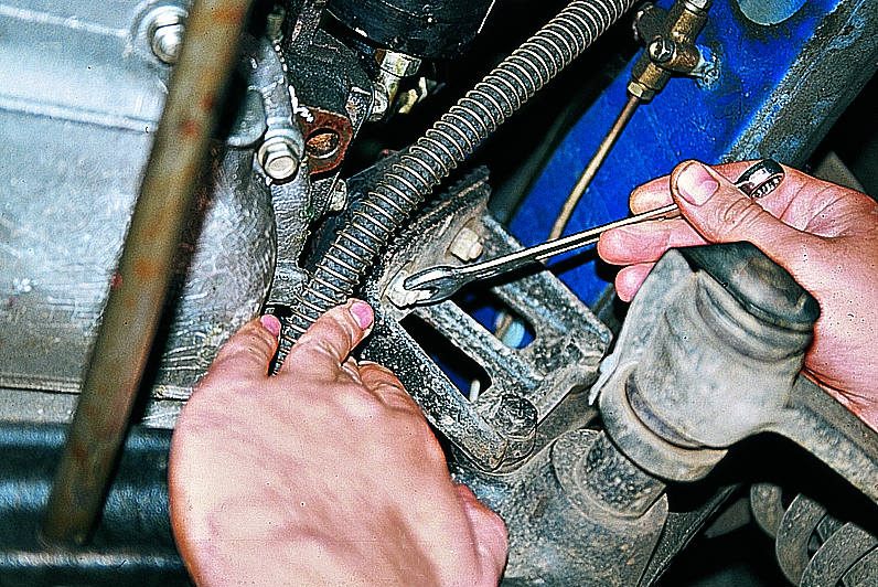 Ключом “на 17” отворачиваем винт крепления кронштейна двигателя к подушке.