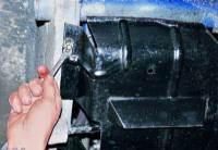 Поэтому, отвернув ключом “на 8” 6 болтов, снимите брызговик двигателя. Съемником отворачиваем масляный фильтр. Или просто – пробиваем корпус фильтра большим гвоздем или выколоткой и используя их как рычаг, отворачиваем фильтр.