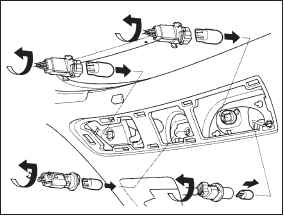 Плафоны освещения салона и индивидуального освещения разбираются одним и тем же способом. Однако в них используются различные лампы.