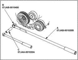 1. Очистите шкив коленчатого вала А, носок коленчатого вала В, болт С и шайбу D. Смажьте новым моторным маслом, как показано на рисунке.