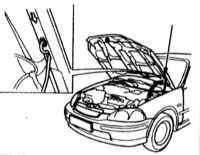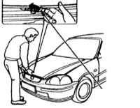 его и выньте конец поддерживающей стойки из гнезда капота.