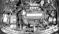 Расположение компонентов системы охлаждения в двигательном отсеке автомобиля (Honda Civic)