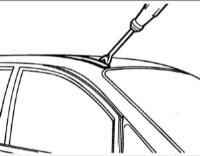 - Лезвием отвертки, как рычагом, отделите конец молдинга крыши так, как показано на рисунке.