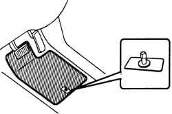 Убедитесь, что напольный коврик правильно установлен на своем месте. Перемещение коврика вперед и, как следствие, его возможное препятствие перемещению педалей может привести к дорожно-транспортному происшествию (аварии).