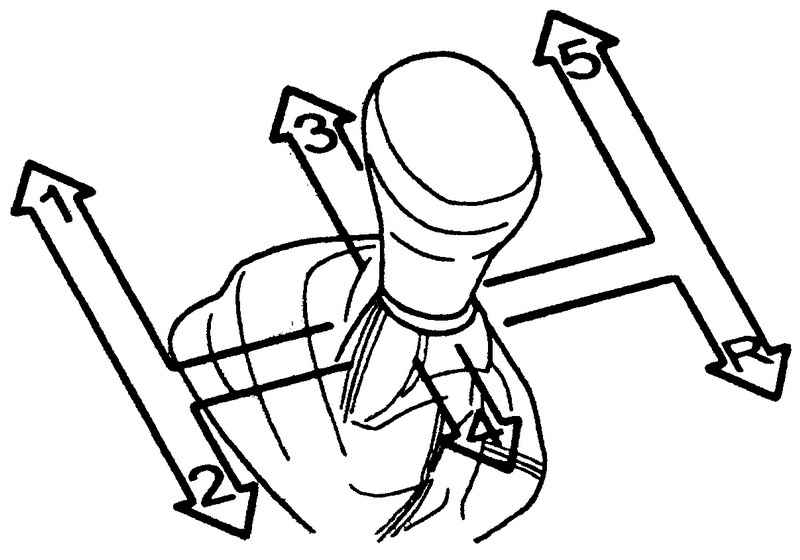 При переключении рычага из положения 5-й передачи в положение 4-й передачи следите за тем, чтобы не включить по ошибке вторую передачу. Такое резкое переключение передач может быть причиной чрезмерного увеличения числа оборотов двигателя (стрелка тахометра в красной зоне). Превышение максимально допустимых оборотов двигателя может привести к повреждению двигателя.