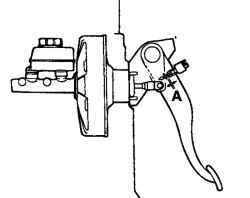 Зазор «А» между педалью тормоза и корпусом выключателя стоп-сигналов: 0,5–1,0 мм.