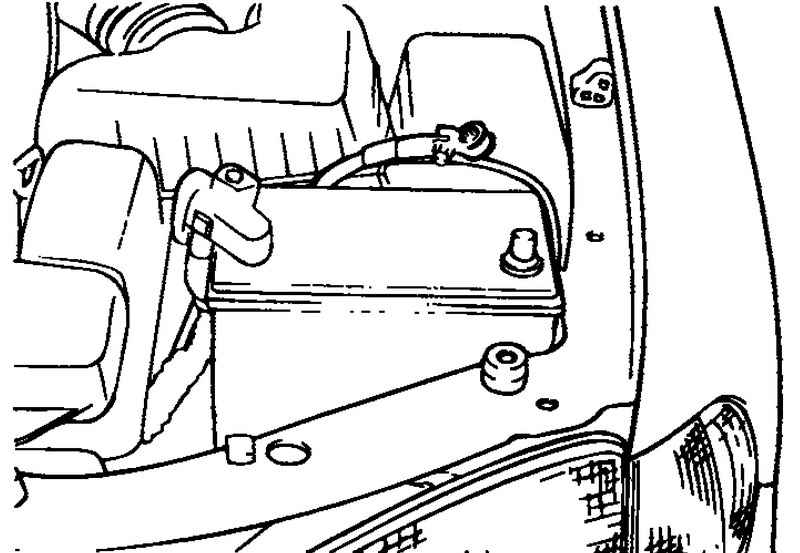 Рис. 7.14. Отсоединение отрицательной клеммы аккумулятора