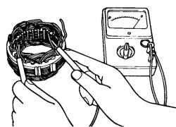 Проверьте отсутствие замыкания обмотки статора на «массу» (отсутствует замкнутая цепь между обмоткой статора и сердечником) ( рис. 7.41).