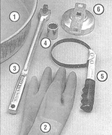Набор инструментов, необходимых для замены двигательного масла и масляного фильтра