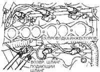 - Снимите мешающие доступу к впускному трубопроводу коммуникационные
